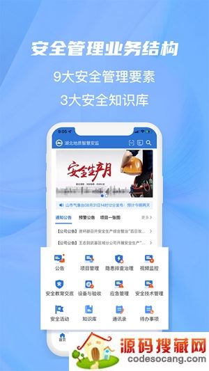 湖北省城市地质工程院智慧安监APP,基于安全生产标准化管理要求,运用“互联网+安全”和网络技术,深化信息化与安全生产业务融合,以需求为导向,以应用为核心,以数据为支撑,打造安全工作集约化信息管理平台,为统筹安全管理顶层设计与施工项目落实落地提供解决方案。