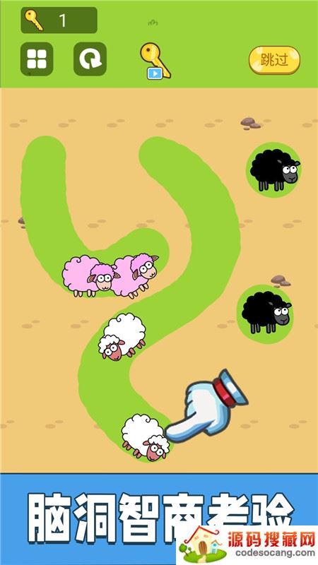 脑力欢乐划线是一款非常考验玩家智商趣味益智的休闲冒险闯关游戏,在游戏中玩家将在沙子中滑动创造道路,根据小羊的位置来规划正确的移动路线,让同颜色的小羊顺利的合并。