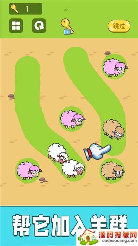 3、简单指尖点击操作,将相同颜色的羊放在一起,赢取胜利。