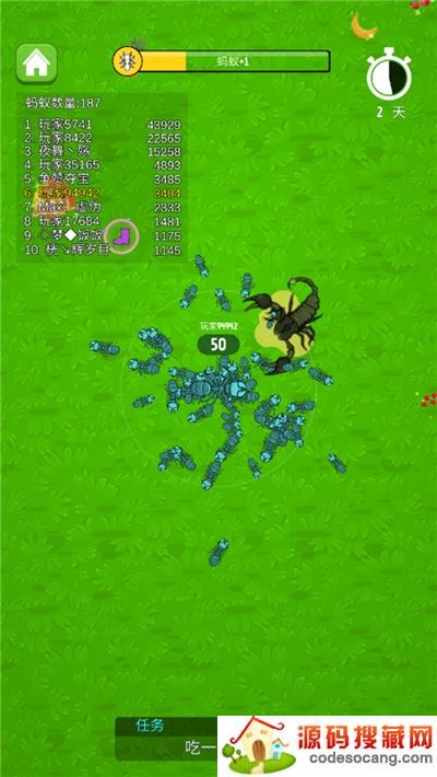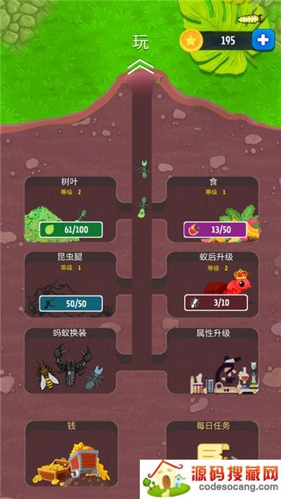 2.招募大量的工蚁,建立属于自己的蚂蚁群,不断壮大自己的蚂蚁帝国。