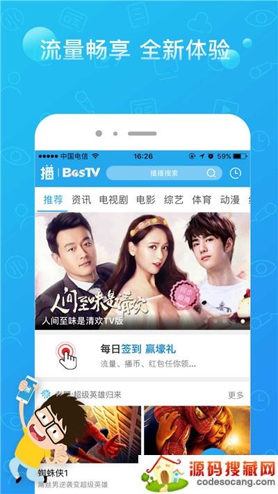 2.免流量观看功能, 在室内的电信手机用户可以免费观看高清电视直播,不用担心流量播放带来的消费压力;