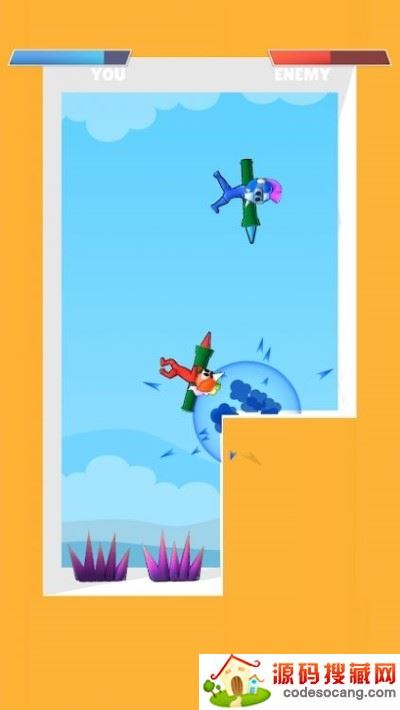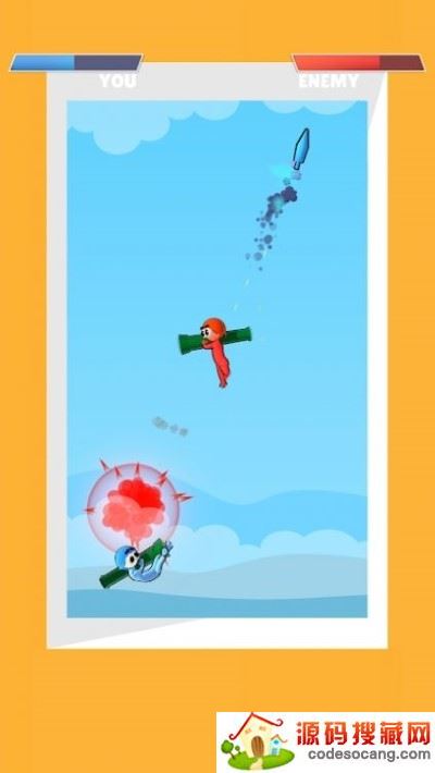 火箭筒对轰是一款利用火箭筒后坐力进行移动并和对手对轰的射击游戏,调整角度瞄准对手发射火箭弹消灭对手,但是在后坐力的作用下,你也会向反方向移动,可以利用这个原理躲避对手的火箭弹,找到合理的位置和角度以最快的速度干掉对手获胜,同时解锁新的角色。