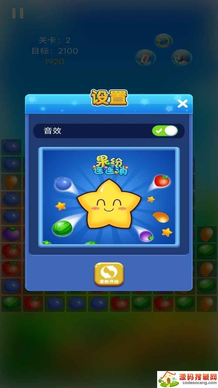 经典的消除玩法,将三个及三个以上的相同图案点击就可以进行消除