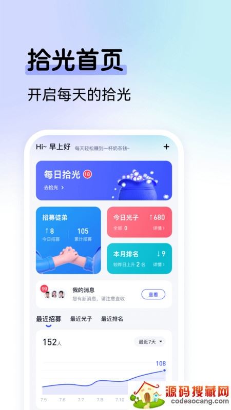 1、拾光首页,开启每天的拾光,丰富的任务都是可以去进行查看,方便便捷;