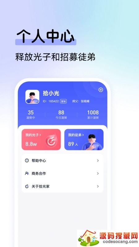 3、个人中心,释放光子和招募徒弟,都可以在个人中心看到更多内容。