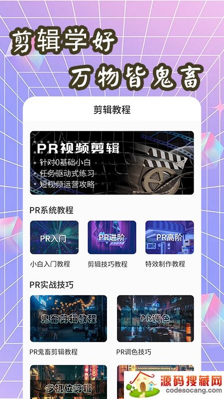 1.提供专业优质的对应视频剪辑指导视频教程,能够帮助用户从零基础快速进行短视频指导练习入门。