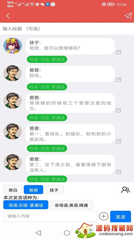 1.您可以上传对话,app将对您上传的对话进行机器翻译并发布;