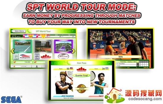 在游戏中,你将穿梭于世界各地的18个场馆与全球50名顶级球员进行对决,游戏支持多种模式,包括SPT世界巡回赛、表演赛以及多人对战,其中多人对战模式可以使用蓝牙与好友进行联机。