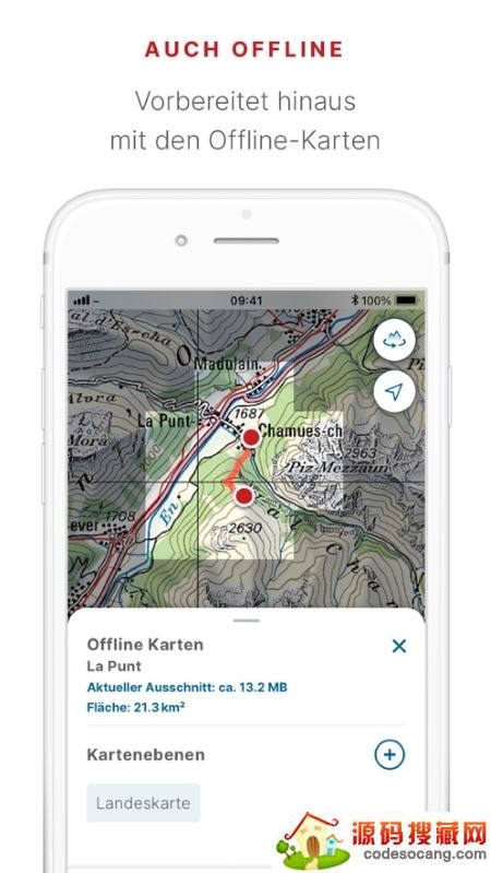 使用著名的国家地图,甚至发现瑞士最偏远的地方,以及远足、骑行、雪上运动和航空等主题。该应用程序的所有功能和数据以及离线使用都是免费的。该应用程序不含广告,不需要登录。