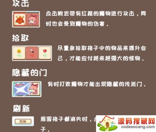 2、在迷宫中需要通过收集生命精华、攻击精华、金币、盾牌等物资让自己逐渐变的强大。