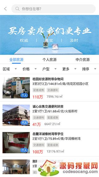 4、通过筛选区域、价格、户型等买卖二手房;