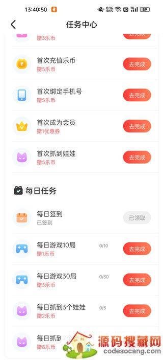 3、每日签到可以领取乐币,每日玩游戏、抓娃娃也可以获取乐币