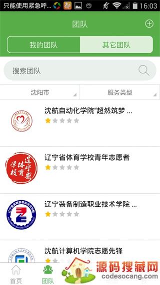 4、还提供多样的团队资源筛选条件,在其他团队栏目中设置了沈阳市或其他地方、还有服务类型切换栏;