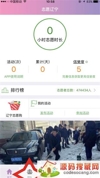1、拥有多种数据统计内容,首页和个人中心都显示了用户个人的小时志愿时长、活动次数以及累计参与天数等;