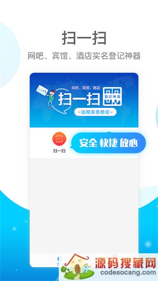 3、扫一扫,是用户在网吧、宾馆、酒店实名登记神器。
