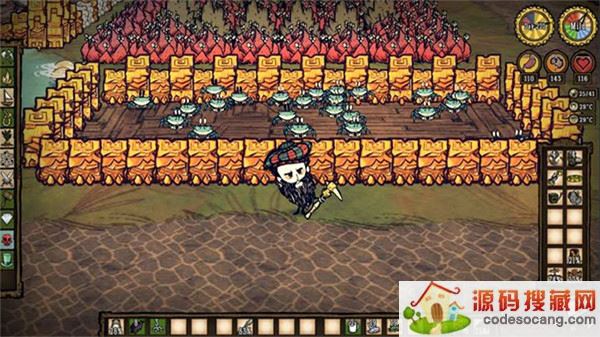 4、冬天太冷会掉血,用石篝火、篝火、热能石+篝火,保暖衣帽等物品保暖过冬。