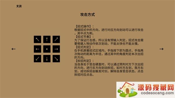 1、八个方向划动及点击做为招式攻击方式,划动的方向即为武器挥动的方向;