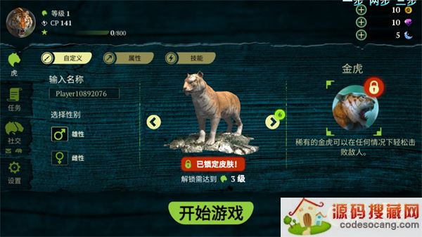 2、在游戏正式开始前,我们可以为老虎取名,选择其性别以及种类。