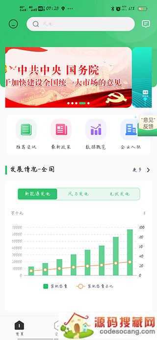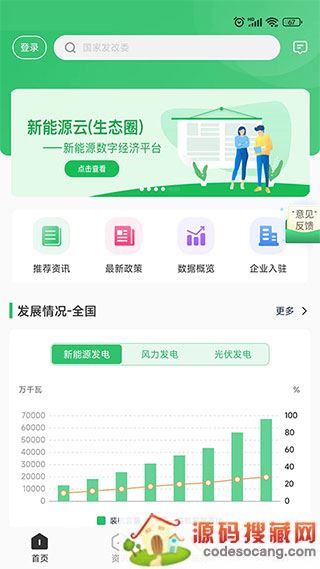 3、选择完成后,小伙伴们可以在首页查看新能源的发电情况,也可以查看最新的资讯。