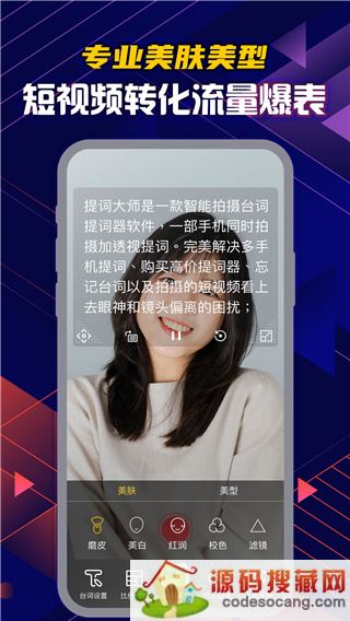 3、随心演讲/vlog/背书/口才训练/短视频制作;美颜提词器不怕忘词,助力短视频营销,拍视频省时又省力!你就是下一个短视频大咖。