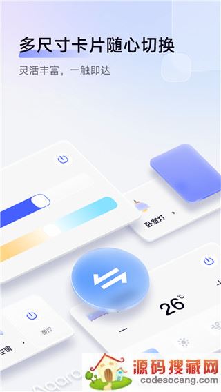 1、首页全新卡片,轻松掌控全屋智能,将智能家居完全控制在手中,远程即可开关空调、调节大门等;