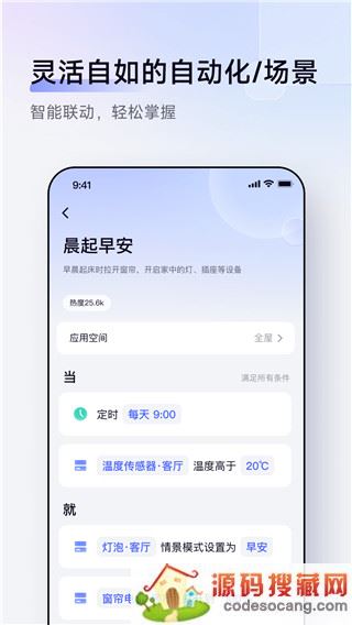 3、一键启动场景动作,多条件设置自动触发,设置不同的条件让应用设置成不同功能,实现智慧化生活;