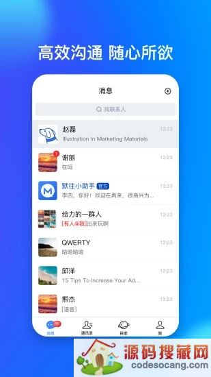 默往app是一款非常有趣的聊天交友软件,由厦门默往科技有限公司精心打造而成。该软件界面清爽美观,功能强大,支持文字、视频、图片、悄悄话等多种聊天形式,为您提供高效便捷的沟通方式。高级的群管理功能,丰富的广场服务应用,特色的悄悄话和关心互动功能,让你和你关心的人沟通更高效更有趣。除此之外,软件还精选有趣的新闻资讯,让你的生活更便捷更有趣,还可以加入到自己感兴趣的群组,和朋友一起畅聊,并提供了新鲜刺激的抢红包玩法,里面还有趣味的模块,悄悄话、坦白说等等,感兴趣的别再犹豫了,快来下载体验一下吧。