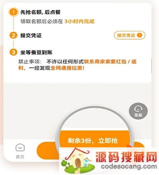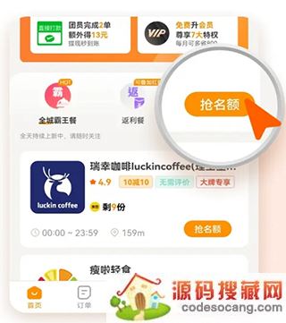 1、选择活动店铺,点击“抢名额”开启霸王餐之旅