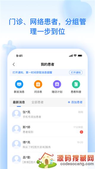 高效患者管理,提高沟通效率,碎片时间、随时随地为患者提供在线服务;具备医生专业性、私密性,是医生管理患者的必备工具。