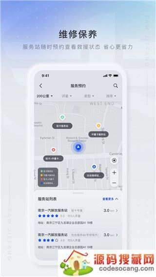 4、服务预约:可以查询一汽解放全国服务站信息,以及进行线上预约保养维修