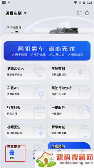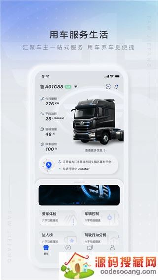 2、点击进入首页,我们可以看到由非常丰富的功能,如车辆控制、车载WiFi、车辆保养、驾驶行为分享、行车月报、违章查询、解放etc等等功能
