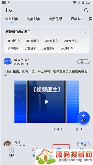 4、点击卡友,里面全部都是卡车用户朋友圈,你可以在上面分享自己的日常