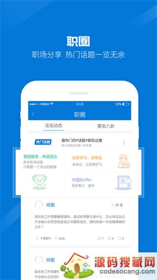 4、底部导航改版优化,“职圈”板块移至个人中心,优化内容审核机制。