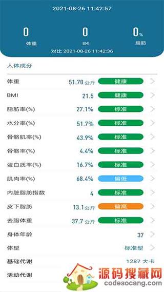 3、体重信息,体重变化的信息以及脂肪肌肉的比例都能知晓,及时的观看到。