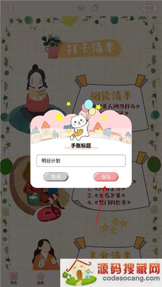 4、编辑好后,点击右上角的【完成】,输入手账标题后点击【保存】即可。