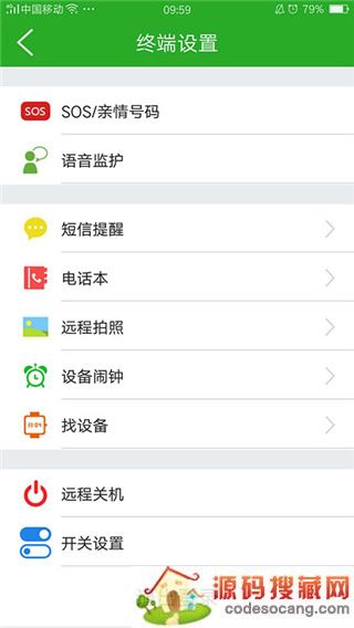 8、终端设置:可以设置SOS/亲情号码,语音监护,电话本等;