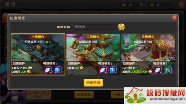 1、玩家达到42级,系统会开启帮派功能。玩家可以选择创建一级、二级、三级帮会,越高级的帮会每日领取的奖励越丰富,可容纳成员数量越多。