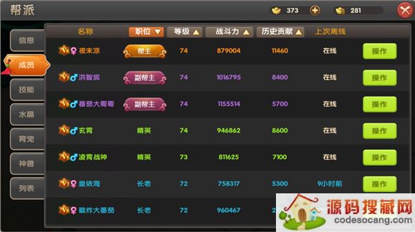 5、职位职权:帮主支配帮派所有权利,副帮主可任命长老和精英、接收和剔除成员、升级水晶等,长老可任命精英,剔除成员等。