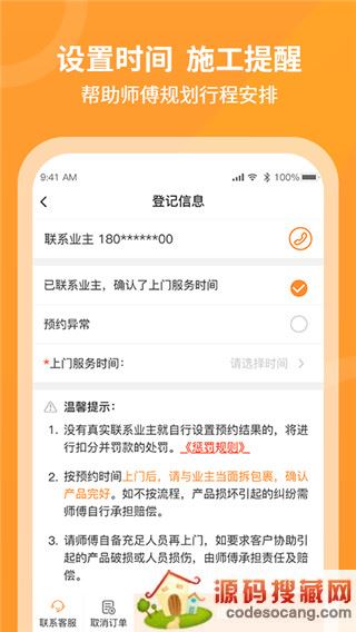 客服在线实时跟踪订单,主动协调,保护 师傅利益