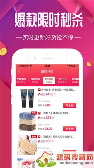 3、限时秒杀:独特的秒杀玩法,让你获得更省钱的购物消费。