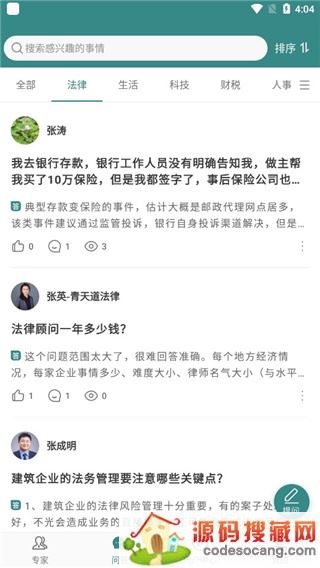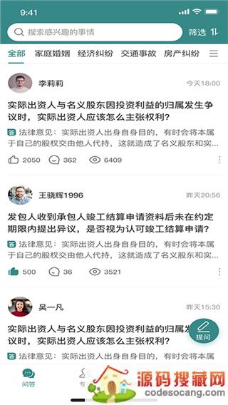 4、进入问答板块,这里有大家对于法律的相关提问,在阅读别人故事的同时还能了解到法律知识;