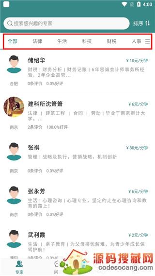 2、进入软件,在首页可以看到律所专家,在上方有详细的分类供大家选择;