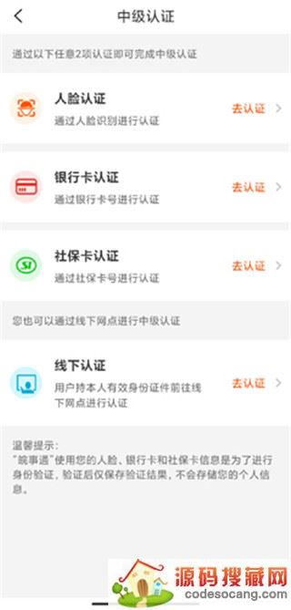 3、 初级认证通过短信验证码认证,用户在注册的时候就可以认证了,用户需要去中级认证