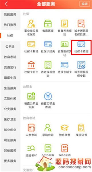 2、在页面右侧选择【社保】,点击【社保卡查询】