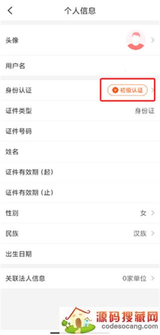 2、在个人信息页面中点击初级认证按钮
