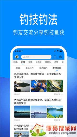 版块有鱼情,茶馆,钓点,约钓,二手,路亚,小视频,朋友圈,商城。