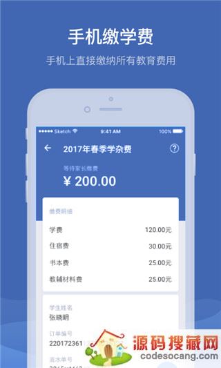3、与“教育收费平台”对接,接收学校发布的缴费订单,并直接在手机完成缴费。