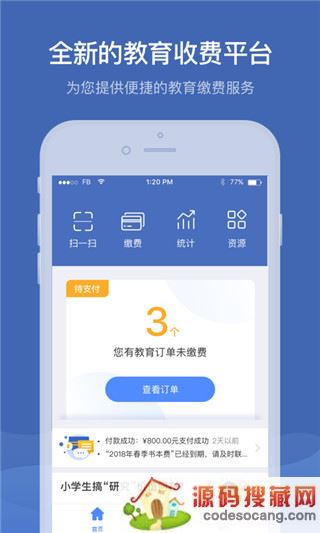 3、教育费用支付提醒,阅览到订单,迅速就能查询并且缴费;