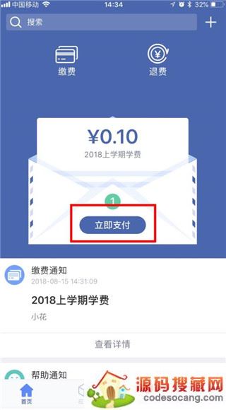 4、此时进入首页,查看缴费信息,点击【立即支付】