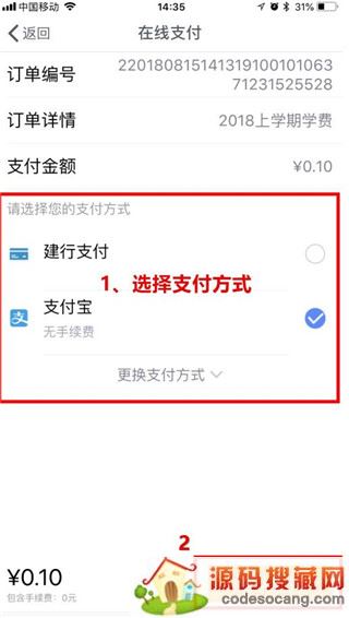 5、点击【缴费】按钮,选择可用的支付方式,然后点击【确认支付】,建议使用“支付宝”支付